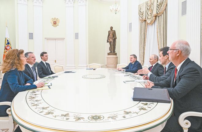 当地时间2日晚,普京在克里姆林宫会见威特科夫和库什纳 视觉中国